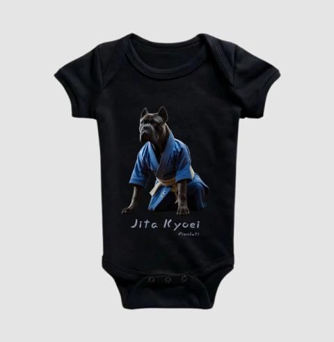 Para os amantes de Cane Corso e Judô, este body infantil une força e cooperação! Com um design exclusivo de um Cane Corso vestindo um kimono e a frase "Jita Kyoei" (princípio do Judô que significa "prosperidade mútua"), representa respeito, lealdade e espírito guerreiro. Feita com tecido premium, oferece conforto e durabilidade para o dia a dia. Ideal para judocas e pais de pet que vivem a filosofia do Judô. Mostre sua paixão com estilo! 🥋🐕🔥